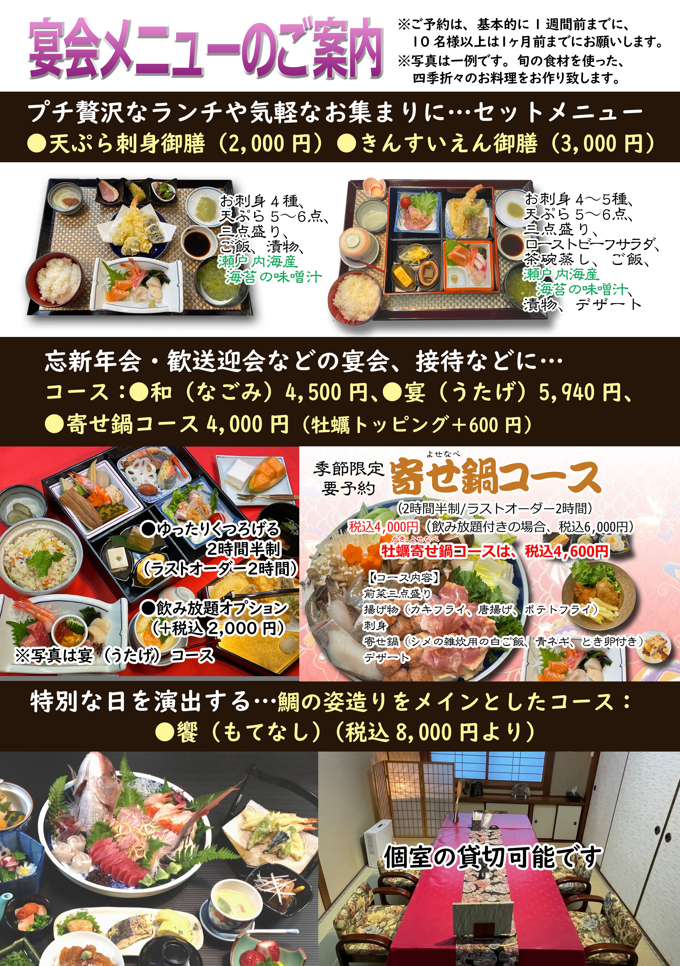 お座敷は、全席イス席。